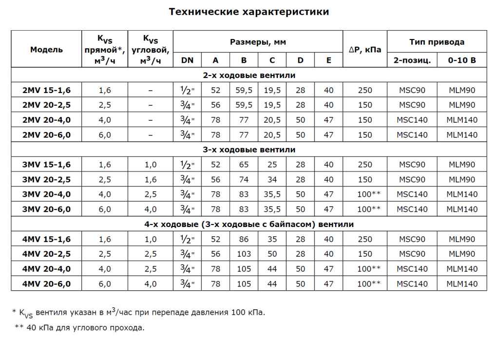 Клапаны Polar Bear типа 2MV, 3MV, 4MV представляют собой серию 2/3/4-х ходовых регулирующих клапанов соответственно. 4-х ходовые клапаны Polar Bear 4MV конструктивно выполнены в виде 3-х ходовых клапанов с байпасом. Клапаны имеют резьбовое соединение. Они предназначены для регулирования расхода горячей или холодной воды в теплообменниках систем вентиляции, кондиционирования и отопления. клапаны Polar Bear 2MV, 3MV, 4MV выпускаются в диапазоне от KVS = 1,6 с присоединительным диаметром 1/2” до KVS=6 с присоединительным диаметром 3/4”. Клапаны Polar Bear 3MV и 4MV могут быть использованы в качестве смесительного устройства. Регулирование у клапанов осуществляется возвратно поступательным перемещением штока. Они снабжены возвратной пружиной, обеспечивающей полное перекрывание потока жидкости при выключении управляющего сигнала. 3-х ходовой клапан перекрывает расположенные один напротив другого проходные отверстия 2 и 1, когда шток находится в верхнем положении. В этом же положении штока клапан открыт между отверстиями 3 и 1. Если шток находится в нижнем положении, трёхходовой клапан полностью открыт между отверстиями 2 и 1 и закрыт между отверстиями 3 и 1. Клапаны можно устанавливать в любом положении. В зависимости от типа используемого привода Polar Bear MSC и MLM клапаны могут работать в режиме двухпозиционного или пропорционального (сигнал 0–10 В) регулирования.