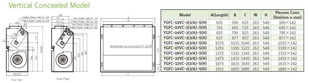 YORK YGFC 02VC вертикальный бескорпусной фанкойл двухтрубный