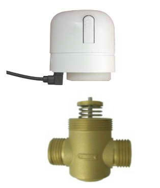 Трехходовой латунный зональный клапан с приводом для фанкойлов 3/4 дюйм.