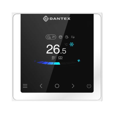 Проводной сенсорный индивидуальный пульт управления внутренних блоков мультизональных систем MVS и фанкойлов подключение осуществляется через шину ABCD приёмника ИК сигнала. Пульт имеет изящный дизайн. Светопрозрачный глянцевый пластик подчёркивает высокое качество устройства. Особенности: Цветной дисплей Двойная уставка температуры Управление скоростью вентилятора (7 скоростей) Автоматическое качание заслонок Подсветка дисплея Установка адреса Приёмник ИК сигнала Статус фильтра Следуй за мной Значение комнатной температуры Индикация температуры в градусах и фаренгейтах Недельный таймер Авторестарт Проверка аварий 2 уровня доступа Групповое управление (до 16 внутренних блоков) Подключение 2-ух пультов к одному внутреннему блоку Выключение дисплея Поддержка основного и вспомогательного пульта Двухсторонняя коммуникация Включение/выключение Тихий режим Изменение температуры 7 ступенчатый свинг Время Запрос системных параметров Таймер Выбор языка управления Фукнция DiTex Управление по WI-FI Функция самоочистки Контроль уровня загрязнения фальтра Двойная уставка температуры