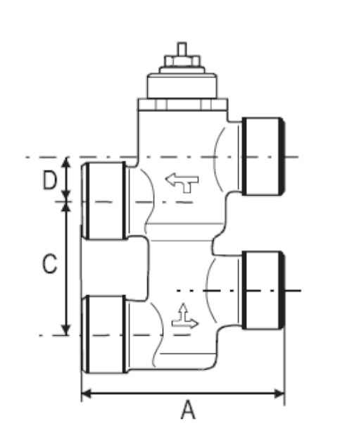 Типоразмер DN15 Kvs (основной канал) 1,6 Kvs (байпасный канал) 1,6 Размеры в мм A 72, C 40, D 13,5